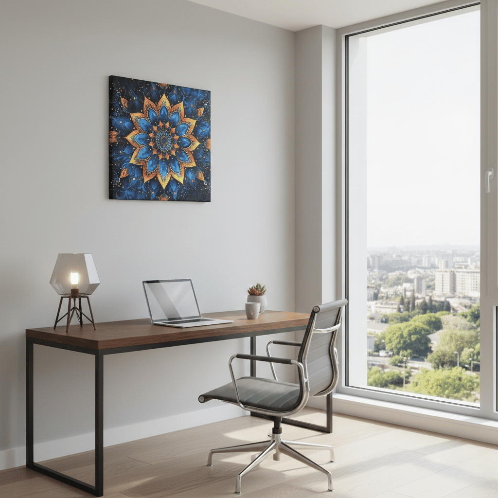 Mandale na platnu niso le estetski dodatek prostoru, temveč simbol harmonije, ravnovesja in notranje povezanosti. Ustvarjene so z namenom, da prostoru dodajo občutek miru, vizualno eleganco ter subtilno atmosfero sprostitve in navdiha.
